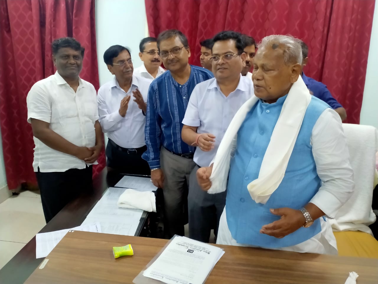 BIA delegation led by Vice President Shri Narendra Kumar with Secretary General Shri Gaurav Sah, Treasurer Shri Manish Kumar, Former President Shri Arun Agarwal, Shri Amarnath Jaiswal – Chairman, Public Procurement Committee, BIA & Shri Rupesh Kumar Singh – Co-Chairman, Food Processing Committee met and felicitated Shri Jeetan Ram manjhi, Hon’ble Minister, Ministry of MSME at the office of dc – msme, Patliputra Industrial Estate, Patna.
